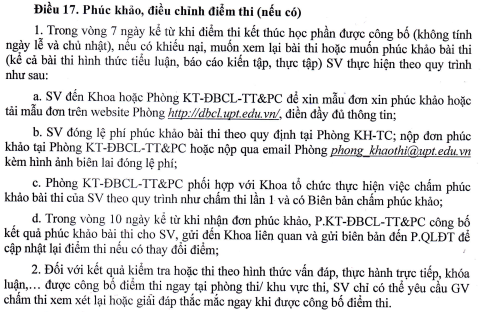 Quy trình phúc khảo điểm thi (trích Quy định tổ chức thi kết thúc học phần ban hành theo Quyết định số 390/QĐ-ĐHPT ngày 08/8/2023 của Hiệu trưởng Trường ĐH Phan thiết)